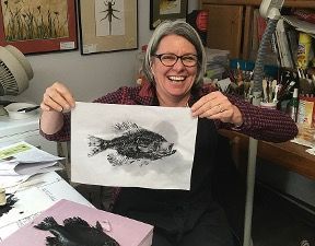 Students will learn Stephen’s version and technique of the direct style of Gyotaku, including knowledge and access to materials and equipment. All necessary materials and supplies, including the fish, will be provided. The workshop includes a printed manual and materials source list that can be used to continue pursuing the printing after the workshop has concluded. Expect to complete 1-3 traditional prints, tinted with layered colored washes.